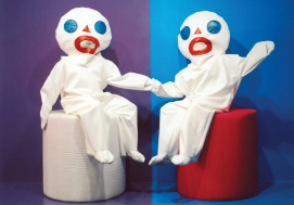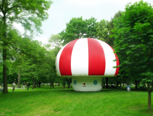 Miami's community embraced FriendsWithYou's playful spirituality. In December 2006, the city's Aventura Mall debuted “Rainbow Valley,” a permanent playground designed by the duo as part of an arts initiative. Unlike any typical mall playpen, Rainbow Valley was a land of soft mountains, rainbow bridges, and cloud slides, all foam-padded and rendered in vibrant colors. Children weren't just passing time here; they were engaging in a FriendsWithYou story. The installation came with a narrative about Peeko, a small pink mountain who loses his family and befriends a wandering cloud named Cloudy. together, they journey to the magical Rainbow Valley in search of playmates. This charming tale unfolded physically as kids crawled through Peeko's hollow mountain form or slid down Cloudy. By giving playground objects names and backstories, Borkson and Sandoval essentially breathed life (and soul) into inanimate forms, a direct expression of their animist philosophy. A journalist from Wired quipped that Rainbow Valley felt like “a warped Mario Brothers level,” noting how its fantastical design utterly transformed the experience of a commercial space. Indeed, through projects like this, FriendsWithYou began to demonstrate how art rooted in play could find its way into daily life (even a shopping mall) and still provoke wonder and connection.