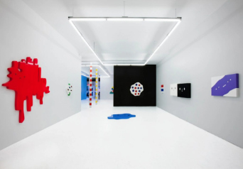 Amid these large public works, FriendsWithYou didn't neglect the art gallery scene. In 2011, they mounted “:)” (yes, a smiley face title), their first solo show in New York, at The Hole gallery. The exhibition featured 22 artworks, including cheerful geometric figures sculpted from wood and painted with glossy car-paint finishes. Critics noted how these pieces distilled the same positive energy of the inflatables into static art objects. The show was dubbed “an interactive, experiential wonderland of pop-straction” and “relentlessly cheerful.” In one corner, visitors might find a cluster of colorful, round-headed sculptures resembling a family of friendly aliens; in another, paintings of smiling clouds floating on fields of flat color. Much like Murakami's or Kusama's exhibitions, :) at The Hole demonstrated that even within a white-cube gallery, FriendsWithYou could create an ambiance of playful spirituality. The artists themselves saw these works as part of a “service art” movement, art in service of the people. They deliberately stripped away any pretension, aiming to communicate on a direct, emotional level. “FWY feels art is for everyone and can aid in connecting humankind,” they stated in the show notes. In an art capital like New York, this ethos was almost radical: while many artists concerned themselves with critique or complexity, FriendsWithYou unabashedly offered happiness and friendship as their artistic message.