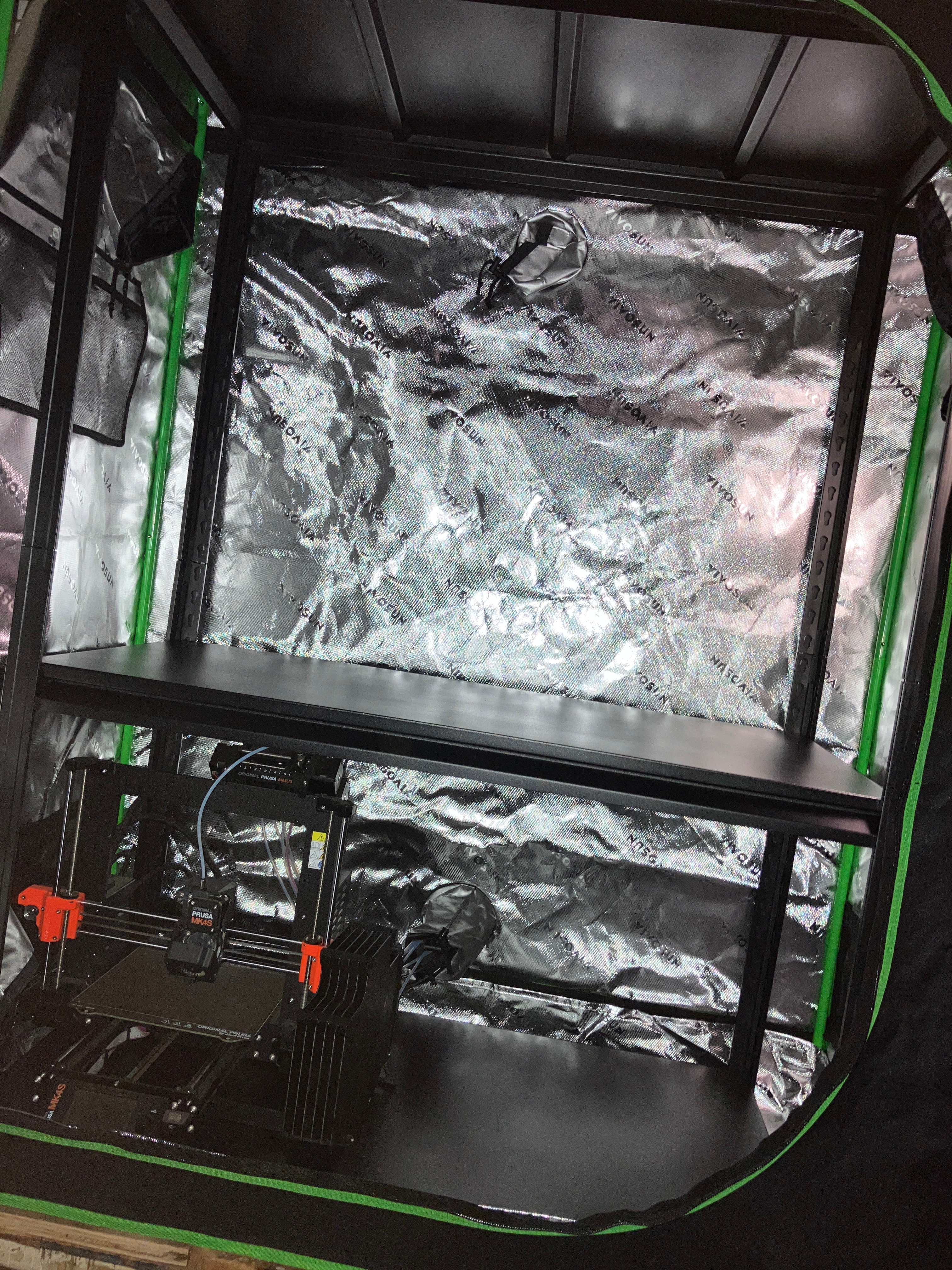 I also began scaling up some bigger projects. I reorganized my 3D printer area, adding shelves and giving everything room to breathe (Fig. 17.5). The enclosure tent helps keep things quieter and improves print reliability for materials that need climate stability. There’s something deeply satisfying about building infrastructure for future creativity.