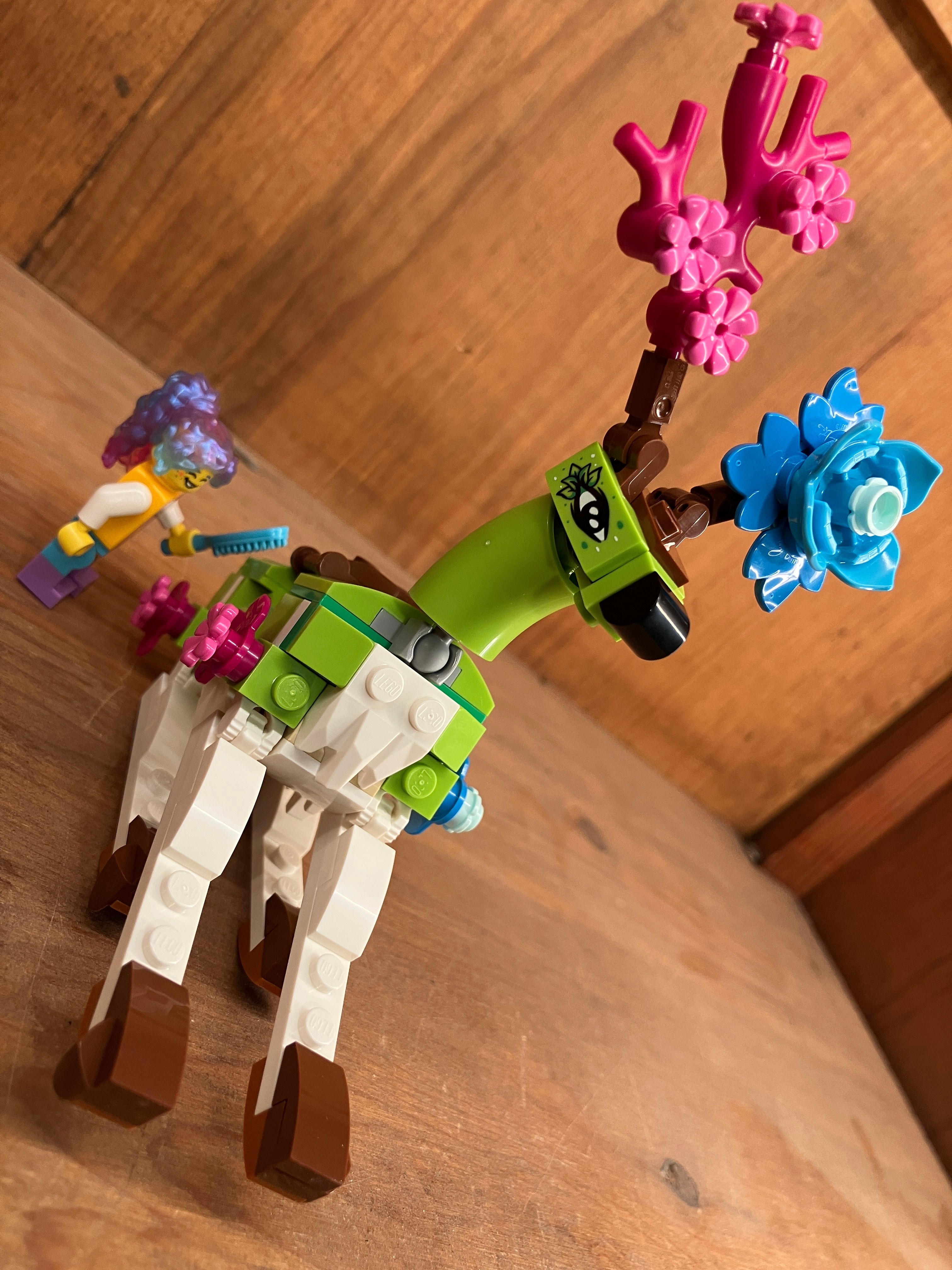 I’ve been spending more time playing with LEGO, and by far my favorite recent set has been Dreamzzz: Stable of Dream Creatures (71459). It features this adorable deer (Fig. 17.1), alongside a stable bursting with bright oranges, yellows, and greens. The entire build radiates warmth. Naturally, I immediately looked up alternate builds people have shared online: everything from turning the stable into a cottage to transforming it into a hobbit-style grass-covered nook. It’s been awe-inspiring to see the show come to life on my desk. And not only that, but the lego instructions have beautiful artwork of the characters `dreaming up' the set alongside you. The attention to detail is what keeps me addicted to the whole experience.