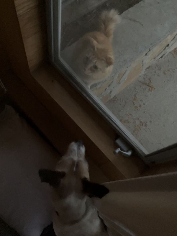More dog-sitting this month! One of my usual dogs met eyes with the neighborhood cat through the glass (photo). Sadly, the cat had to stay out in the cold, since he doesn’t get along with one of the visiting pups. He's a tough outdoor cat, though... I’m sure he’ll reclaim his territory soon enough.